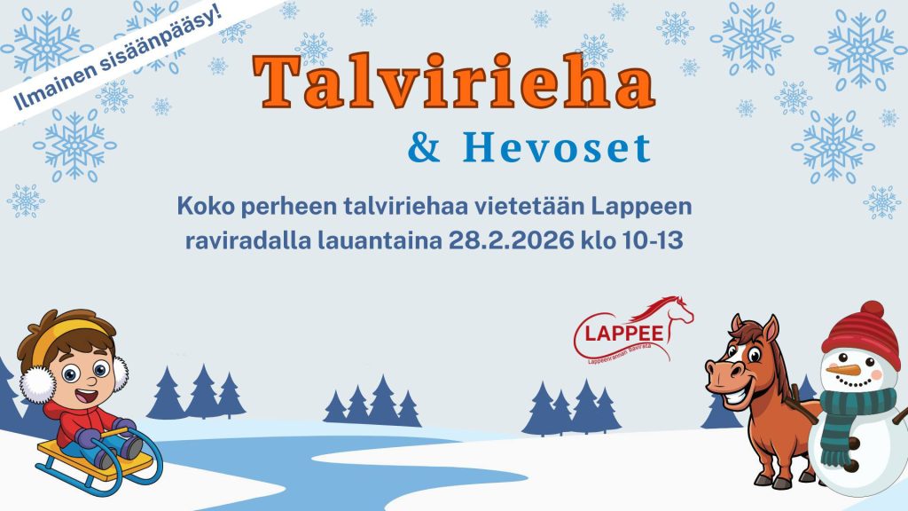 Talvirieha & Hevoset -tapahtuma Tervetuloa nauttimaan talvilauantaista yhdessä! Talvirieha & Hevoset kokoaa raviradalle iloisen tunnelman,…
